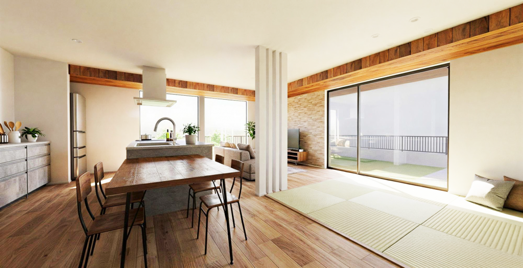 - LDKから庭、空・海までつながる開放感あふれる家
