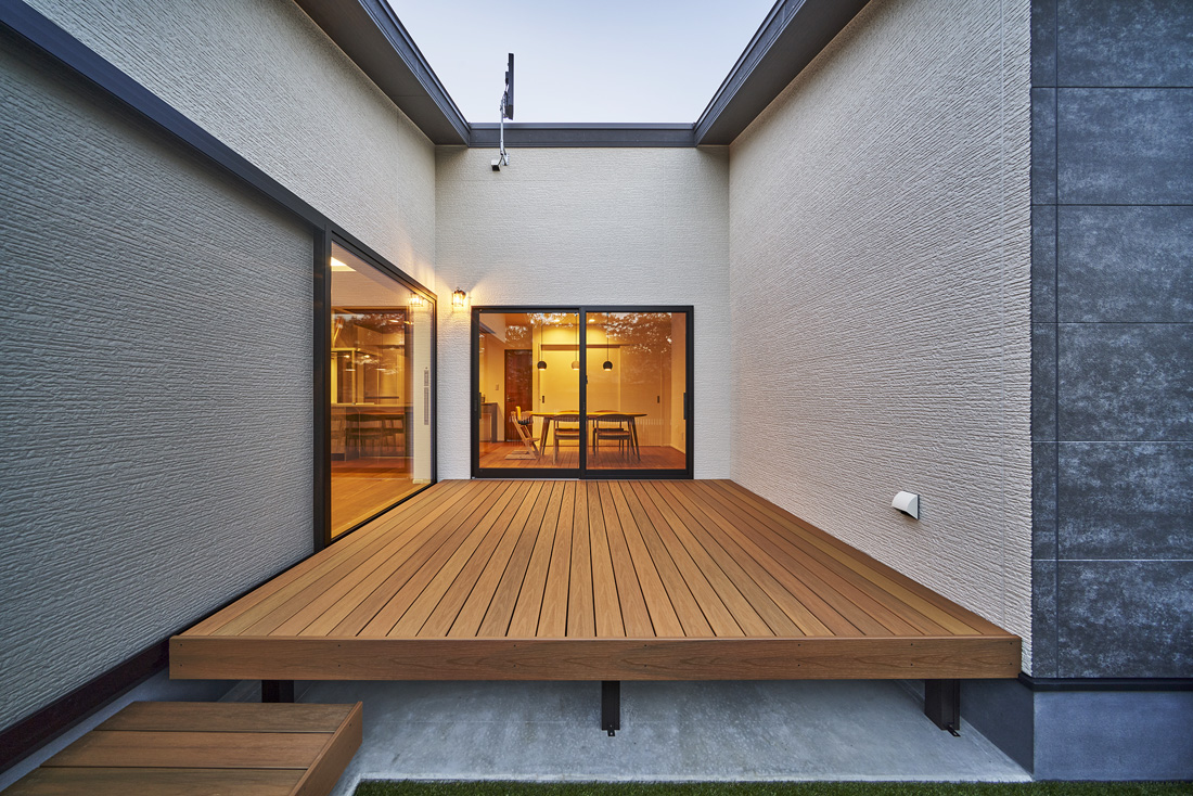 ウッドデッキとお庭のある、ナチュラルヴィンテージな家